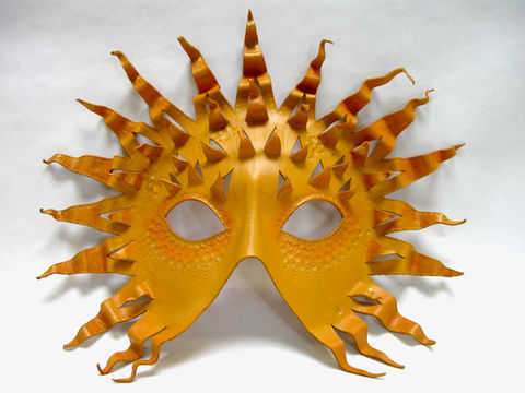 My Masks are made from vegetable tanned leather that is then stained or painted after which a light coating of bee’s wax is then applied to the masks outer surface. As the masks are made from leather it makes them very light and easy to wear.
